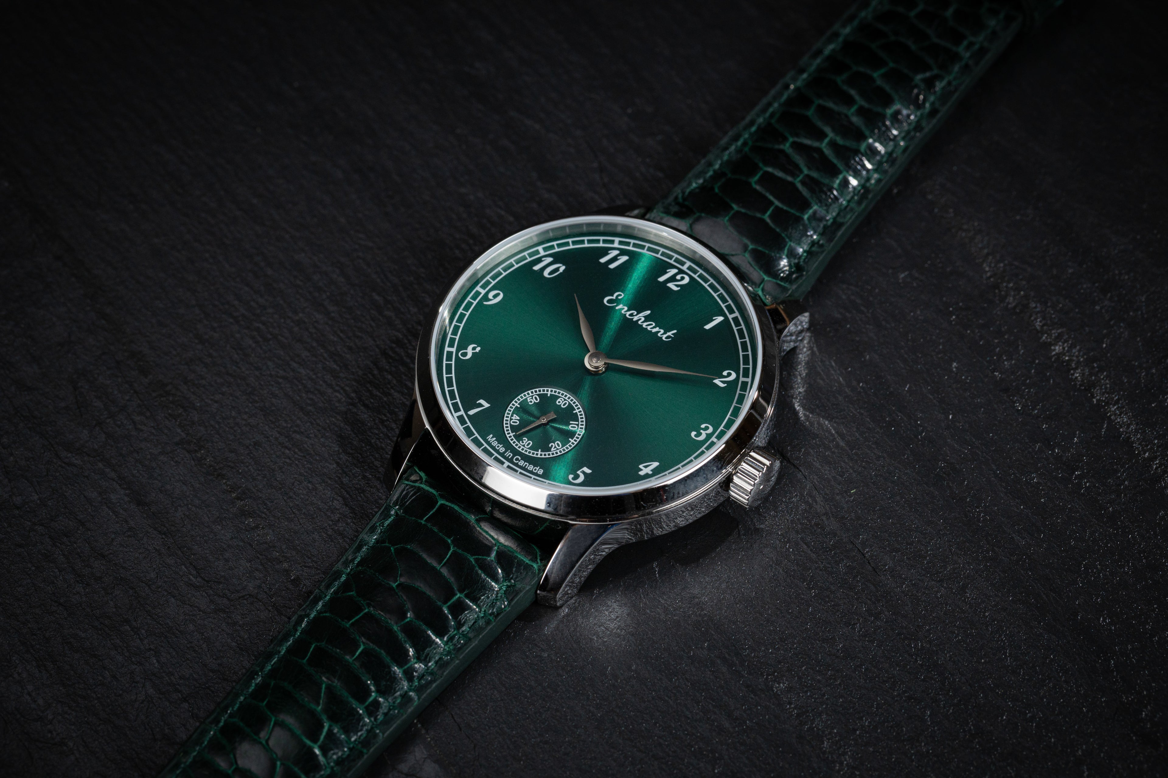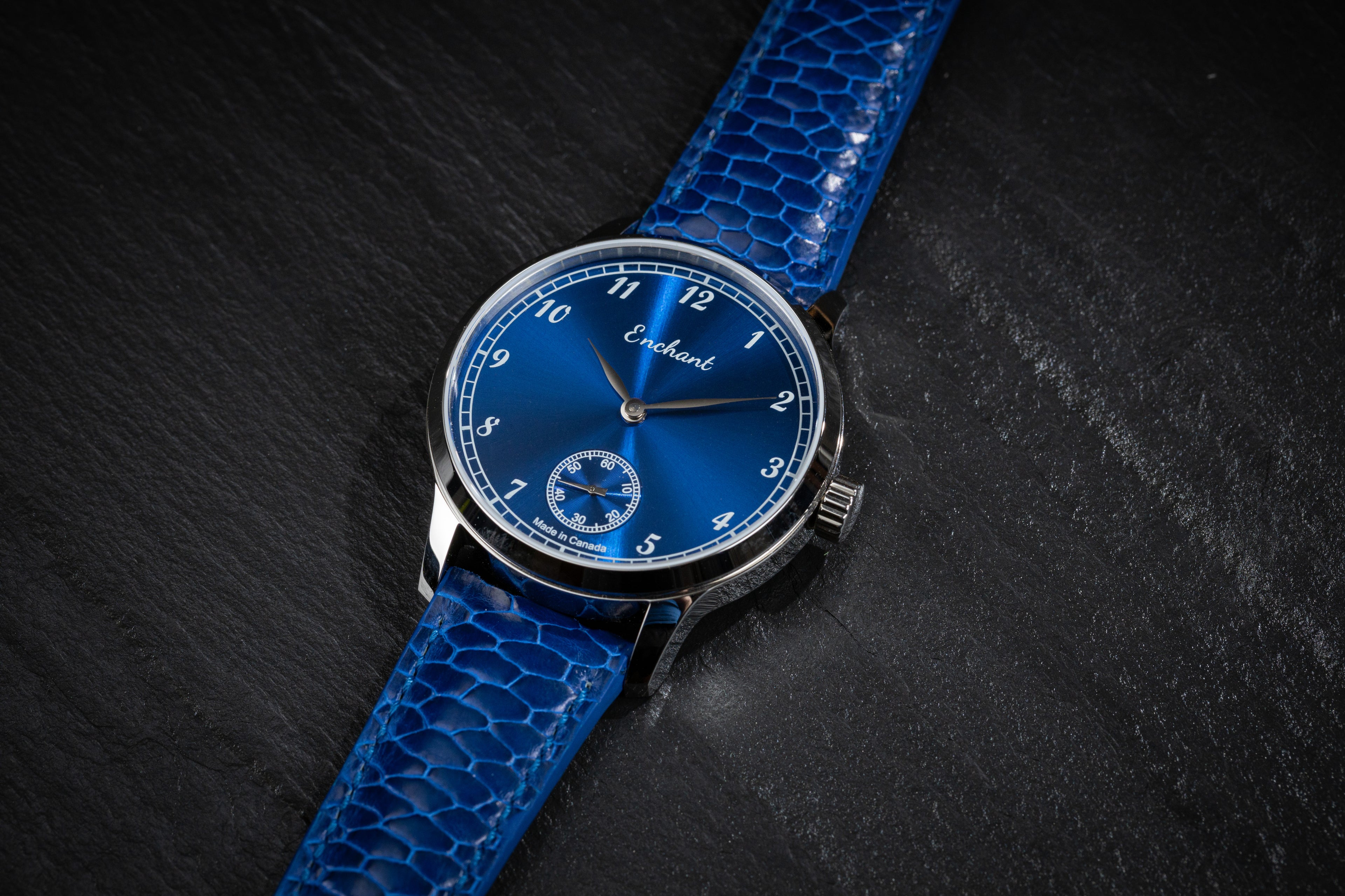 Enchant is a Canadian watch company based in Calgary, Alberta, that started with a simple idea, creating a high quality watch that are designed and built in Canada with local artisans. Inspired by the Swiss Mountaineers that helped carve the paths for the railways of the West, and pays homage to Sir Sandford Fleming and the creation of standard time.